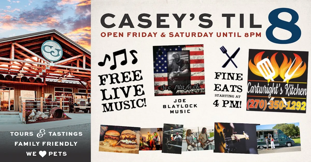 Beginning April 1st, Casey Jones Distillery will be open Friday and Saturday nights 'til 8pm.